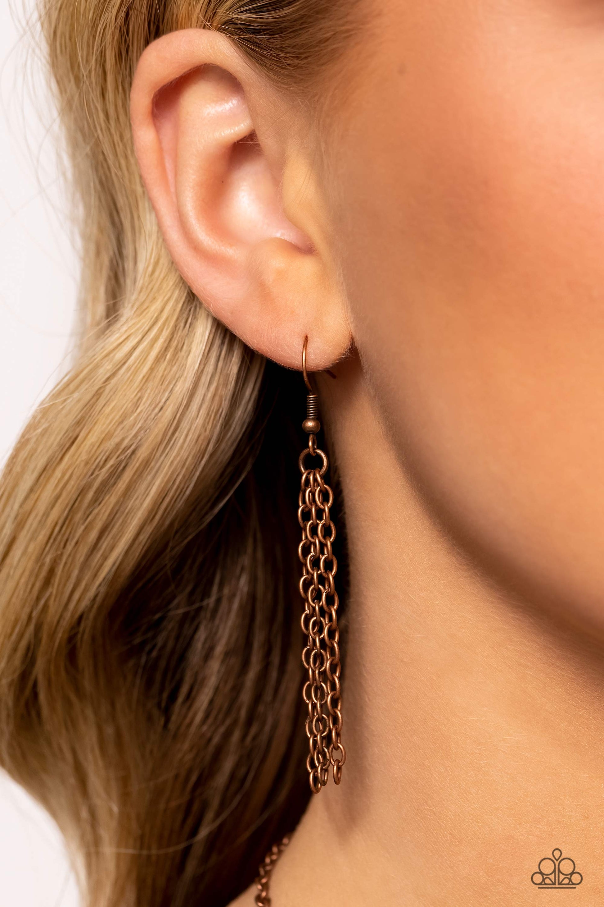 Sold as one individual necklace. Includes one pair of copper fringe earrings.