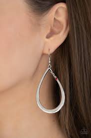 Dotted with a dainty red rhinestone, an ornate silver teardrop frame swings from the ear for a casual fashion. Earring attaches to a standard fishhook fitting.